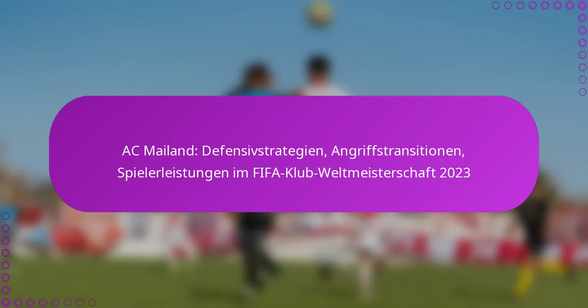 Die Defensivstrategien von AC Milan in der FIFA Klub-Weltmeisterschaft 2023 konzentrieren sich auf eine solide Formation, taktische Flexibilität und die Rollen von Schlüsselspielern, um effektiv Tore zu verhindern. Durch einen strukturierten Ansatz zielen sie darauf ab, die Gegner zu neutralisieren und gleichzeitig die Fähigkeit zu bewahren, schnell in den Angriff überzugehen.