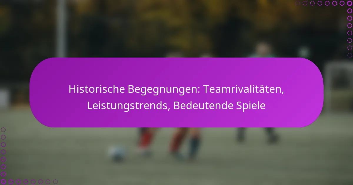 Teamrivalitäten im Sport werden durch intensive Wettbewerbe und tief verwurzelte Geschichten angeheizt, die oft geografische Verbindungen oder bedeutende Ereignisse widerspiegeln, die die beteiligten Teams definieren. Die Analyse von Leistungstrends in diesen historischen Begegnungen offenbart faszinierende Muster und hebt hervor, wie Teams im Laufe der Zeit konstant gegeneinander abgeschnitten haben. Bedeutende Spiele, einschließlich entscheidender Playoff-Begegnungen und unvergesslicher Spiele in der regulären Saison, bereichern diese Rivalitäten weiter und hinterlassen unauslöschliche Spuren bei den Teams und ihren leidenschaftlichen Fangemeinden.